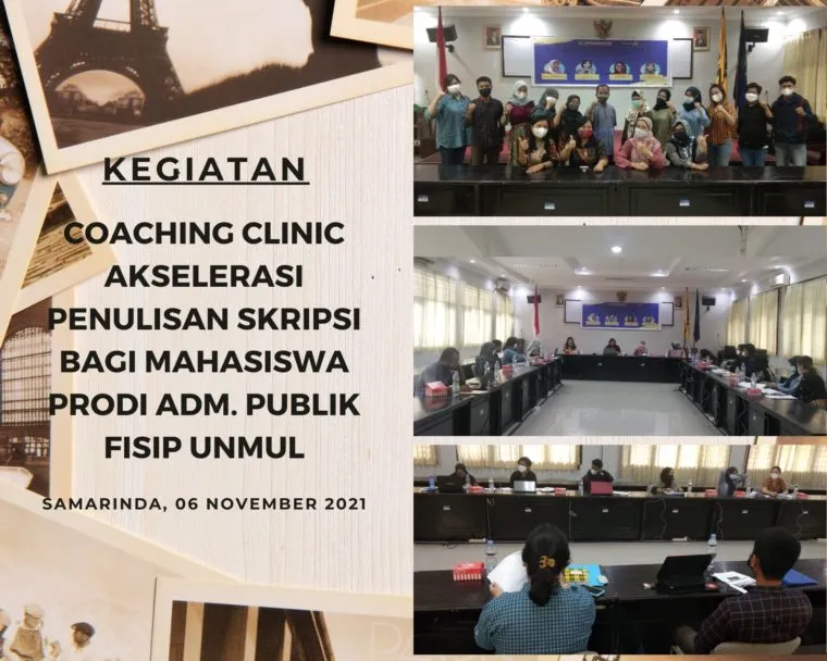 Pelaksanaan kegiatan Coaching Clinic Akselerasi Penulisan Skripsi bagi Mahasiswa Program Studi S1 Administrasi Publik FISIP Unmul ini, yang memprioritaskan pada mahasiswa yang telah disetujui pengajuan judulnya oleh Koordinator Program Studi. Dengan dasar pertimbangan bahwa kegiatan ini juga akan dapat memberikan kontribusi yang jelas dalam upaya pengelola Program Studi S1 Administrasi Publik dalam hal mempertahankan peringkat A dalam akreditasi program studi.